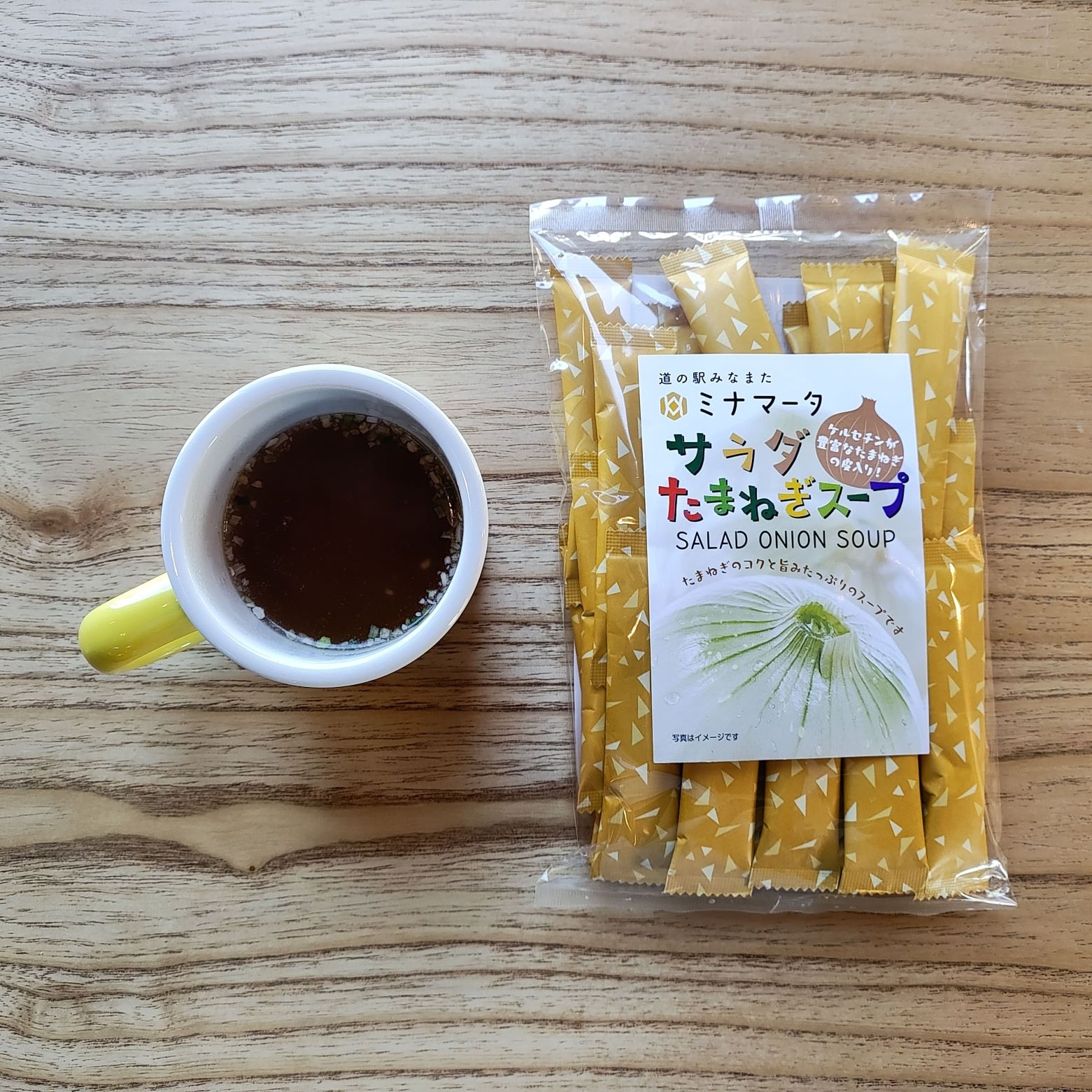 コクと旨み、生で甘くて美味しい水俣特産「サラダ玉ねぎ」を粉末にして、道の駅みなまたオリジナル商品「サラダ玉ねぎスープ」として商品化しました。