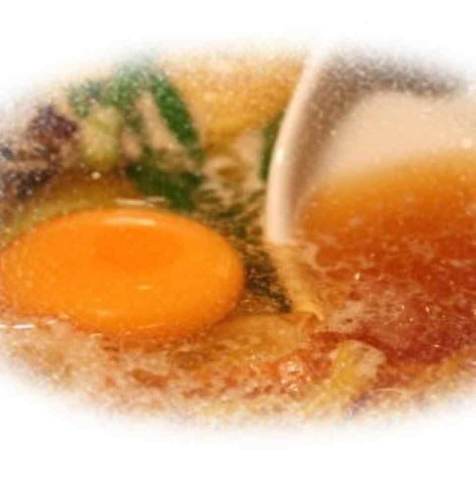 鶏肉(親鳥)やネギ、生卵にちくわを入れて土鍋で一緒にグツグツ煮込むのが須崎流! アツアツの麺を美味しく召し上がった後は、残ったスープで〆のおじや(雑炊)もオススメです!