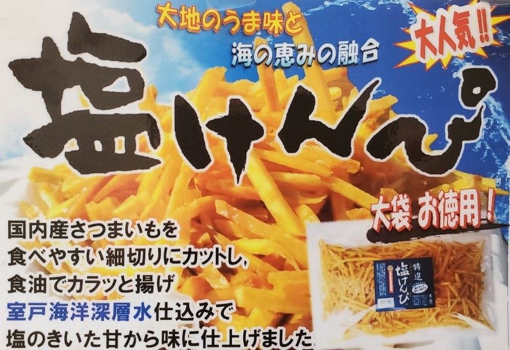 国内産のさつまいもを食べやすい細切りにカットし、食用油でカラッと揚げ、そこにミネラル豊富な室戸の海洋深層水を合わせ、塩気と甘みが絶妙に合わさった味に仕上げました。