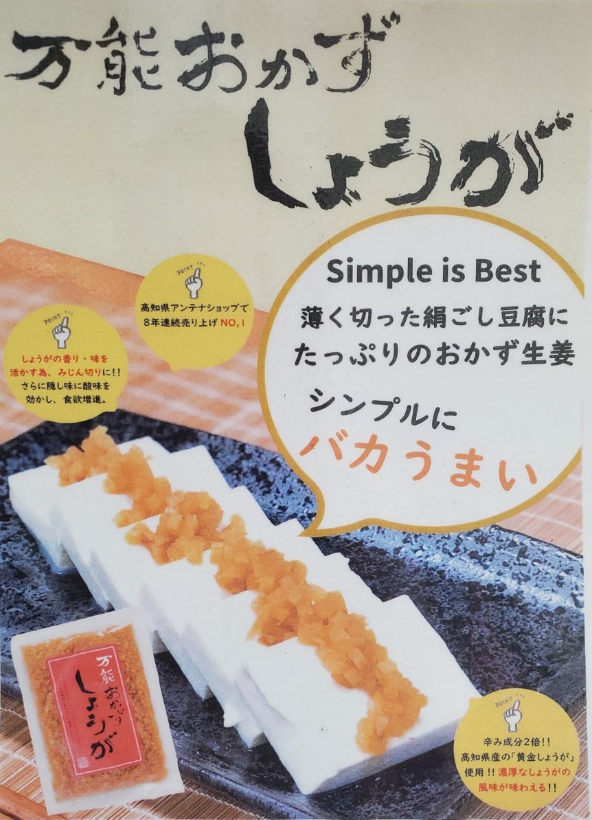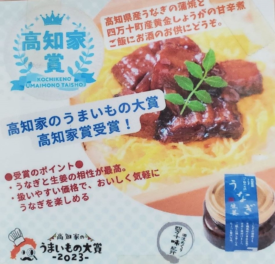 高知は生姜の名産地でもあります。その生姜に高知産の貴重なうなぎを合わせ、お手軽にうなぎの美味しさを堪能できる「うなぎ生姜」、高知県アンテナショップで8年連続売上No.1の鉄板人気商品「万能おかずしょうが」。
