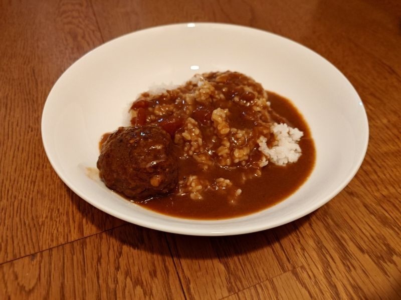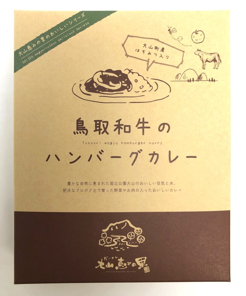 大山町産のはちみつと、大人も子供も大好きな鳥取和牛のハンバーグがまるごと入った中辛のカレーです。