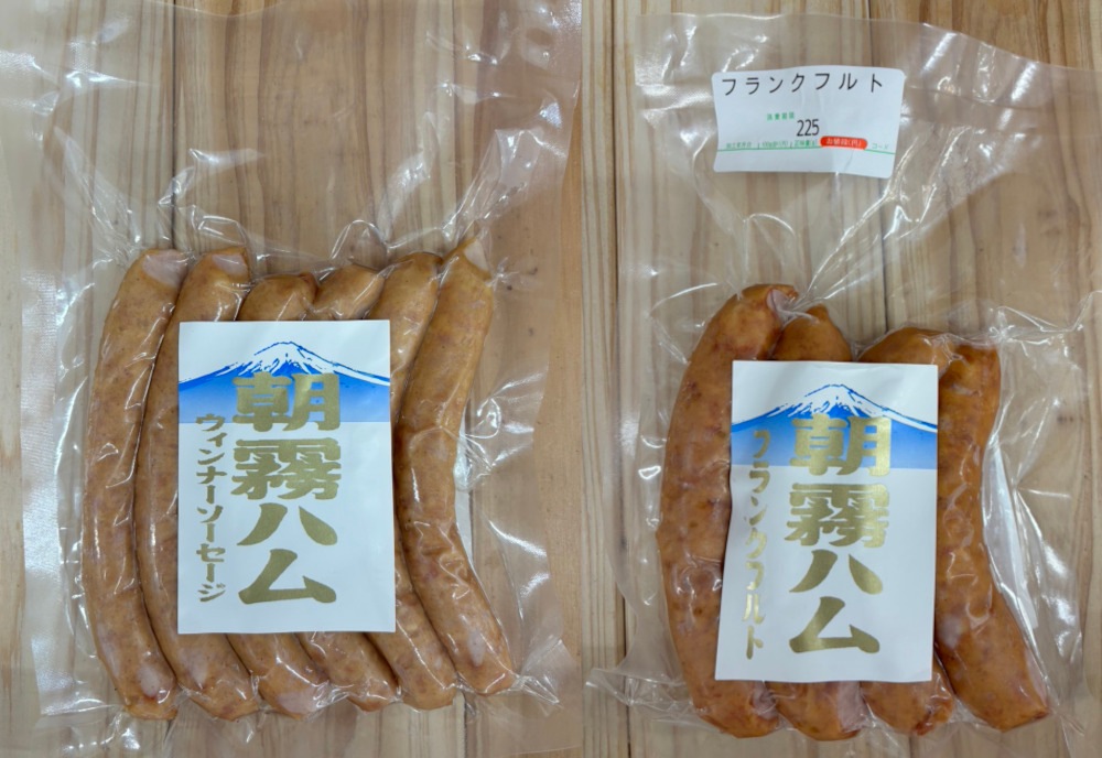 フランクフルトは一般的には豚の腸を使用したソーセージですが、朝霧ハムでは太い羊の腸を使用しています。