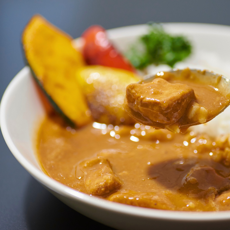 宗像の飼料で大切に育てられた宗像のブランド鶏「むなかた鶏」を使用し、程よい歯ごたえの肉質と旨味を存分に生かした、むなかた鶏カレーをお楽しみください。