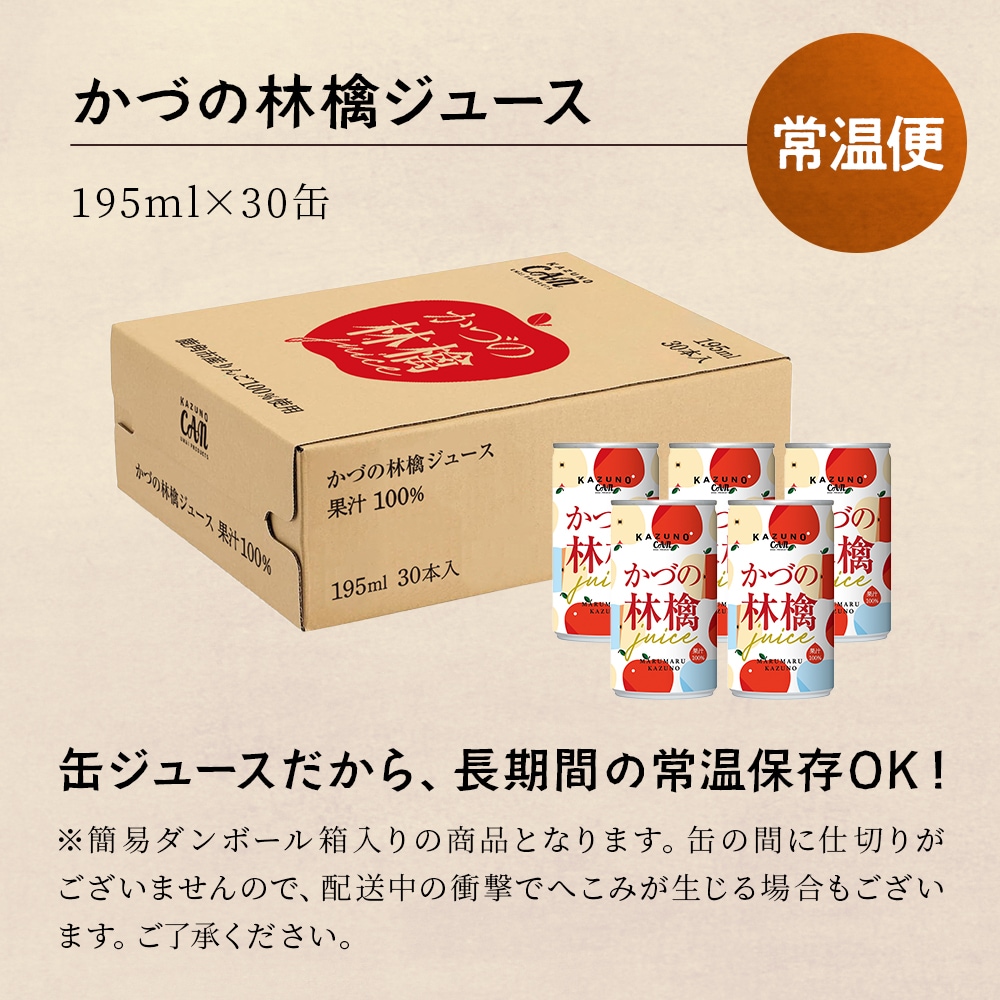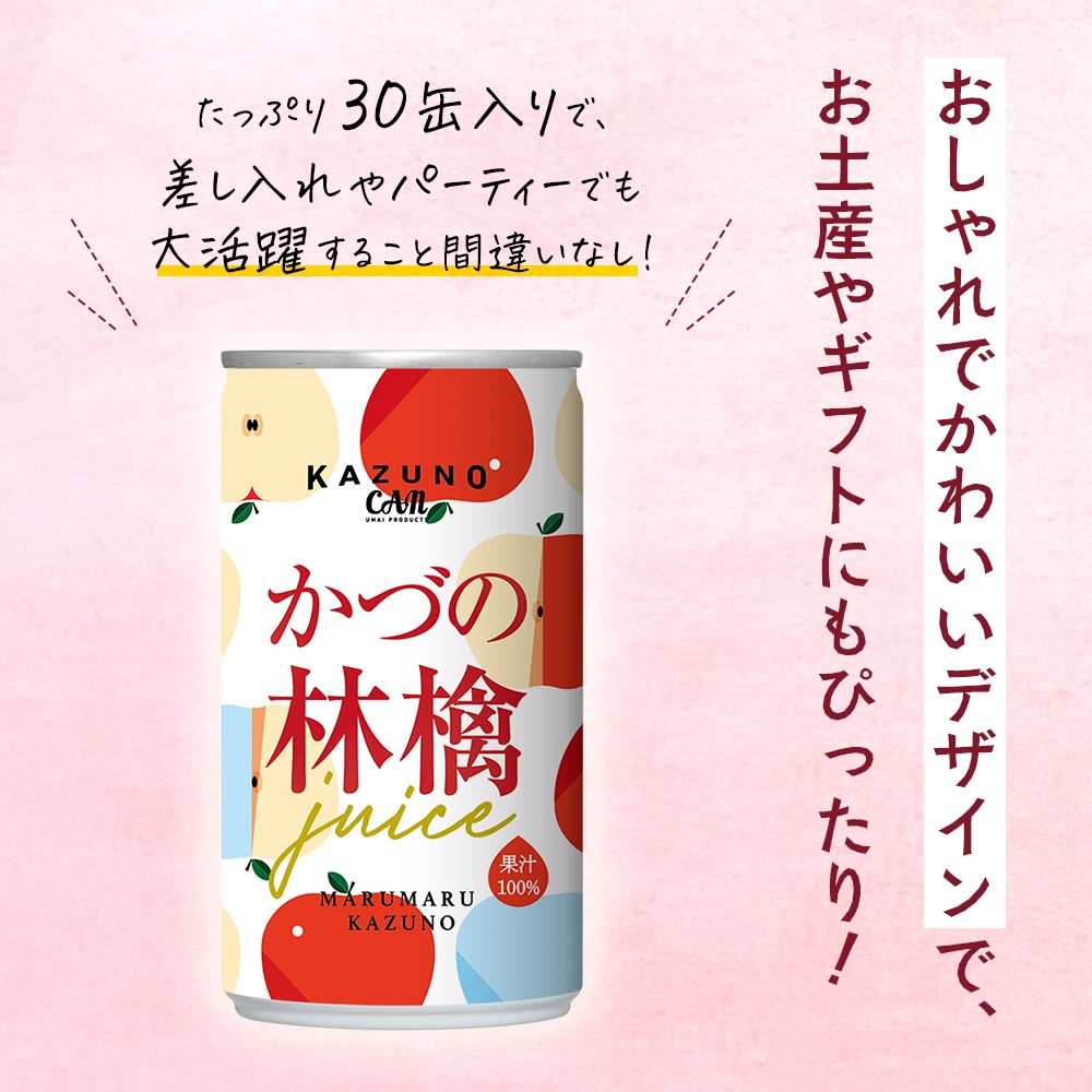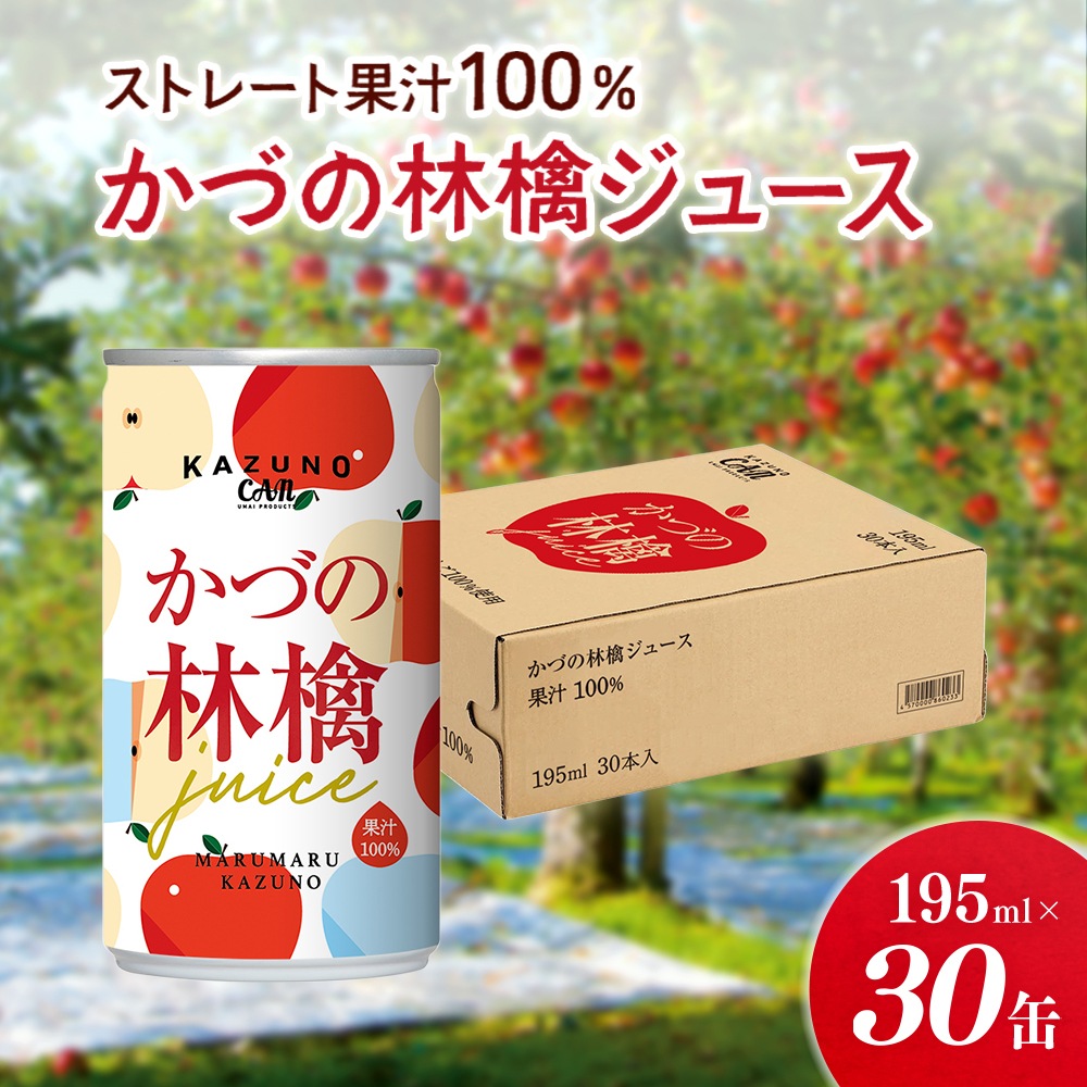 道の駅おおゆ限定 ストレート果汁100% かづの林檎ジュース 195ml 30缶セット