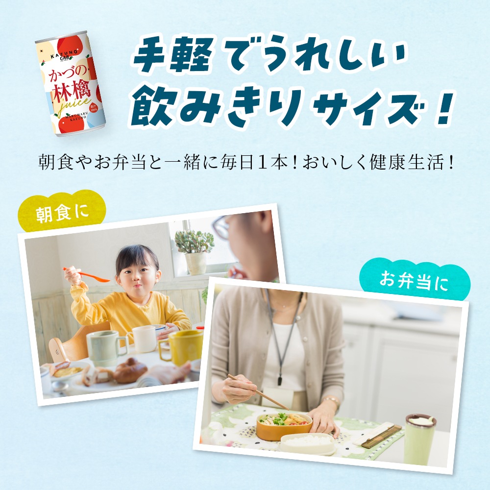 みずみずしい甘さと適度な酸味の「サンふじ」と糖度15%以上の「秋田紅あかり」をバランスよくブレンドしました。 大人も子供も家族みんなでゴクゴク飲める、手軽な嬉しいサイズです。