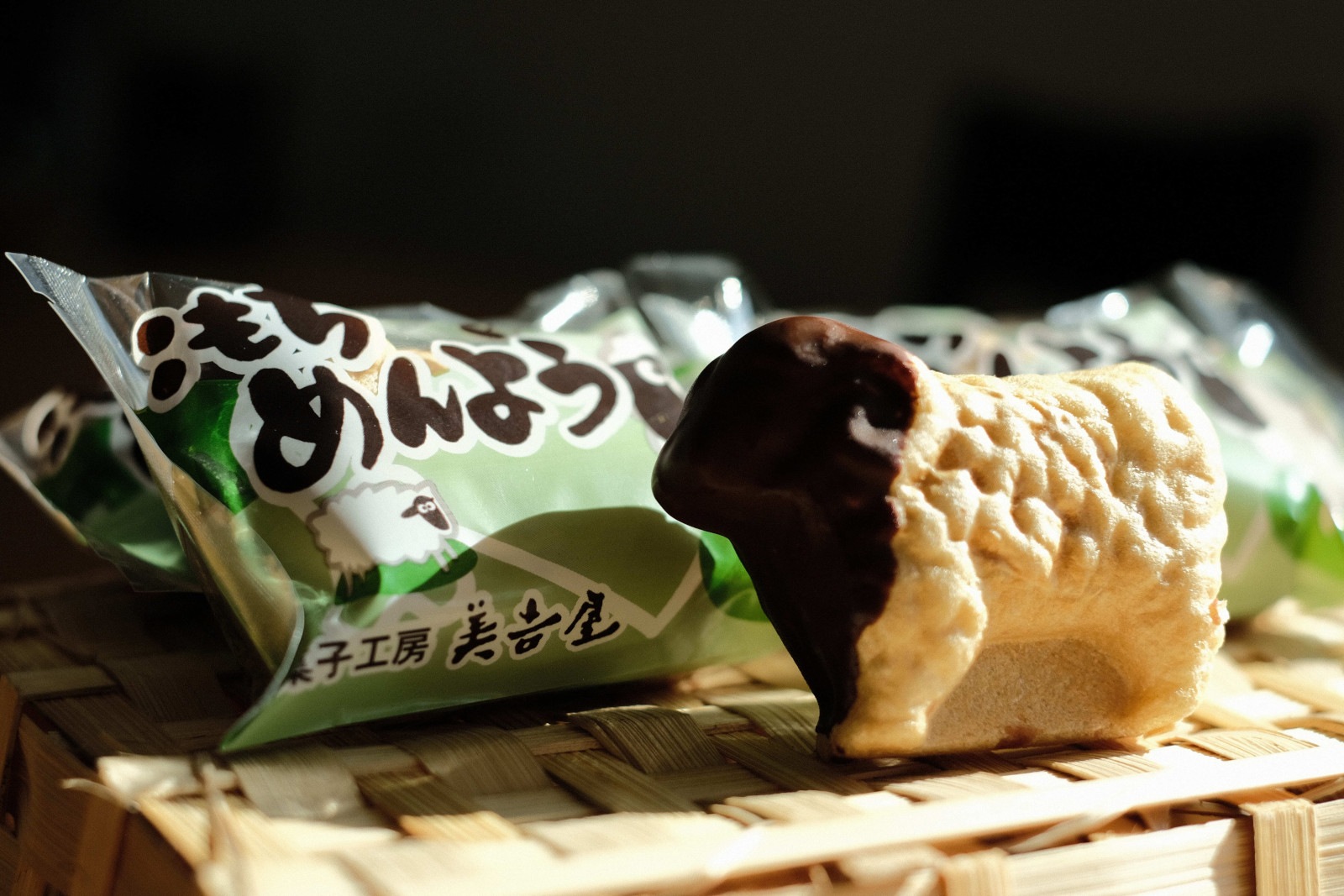 羊の形をした最中の皮と、頭の部分にかかったチョコレートが目を引きます。